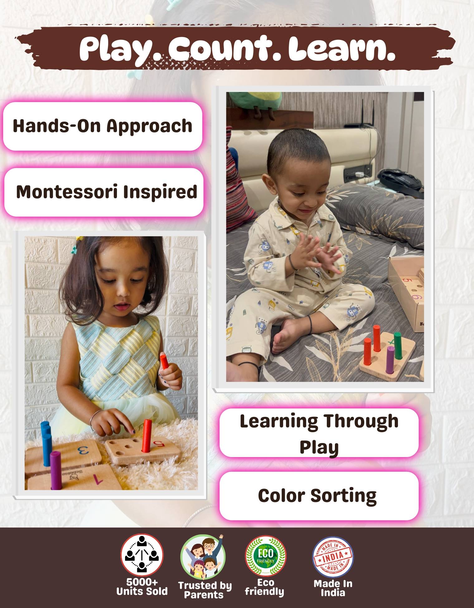 Yes! The number pegs are brightly colored to make counting fun and visually stimulating—ideal for early learners exploring number toys.